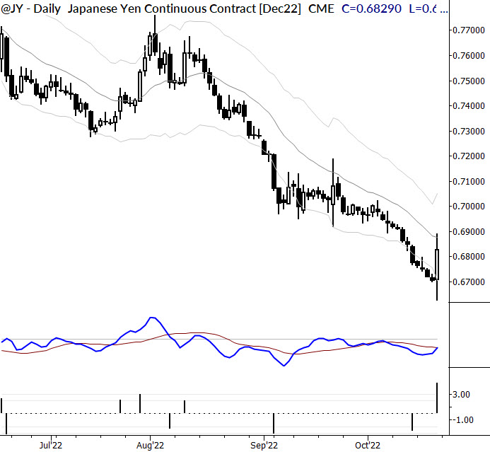 We’ve traded in and out of the Japanese Yen a bit in recent weeks, and have had a short on for our MarketLife members since late September. We have been increasingly concerned about the possibility of an intervention, and this emerged Friday with a gigantic single-day rally.