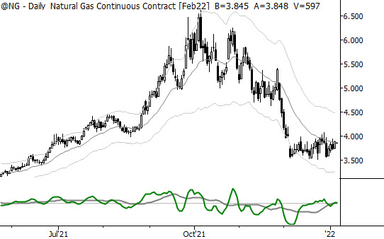 Volatility is just a number. By itself, it doesn't really tell us much, but knowing if a market has recently become more or less volatile can give us significant insight about what comes next. To a very real extent, any trade is a forecast on future volatility conditions. Here's an example of a market which has recently become much more volatile: