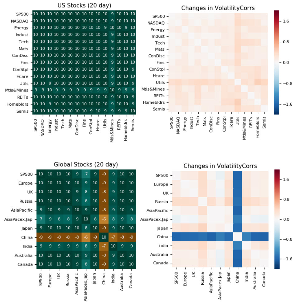 So we started presentable both longer and short-term correlation tables, as well as highlighting the changes in short-term (20 day) correlations from week to week. This was interesting, but I also started looking at correlation of volatility between markets.