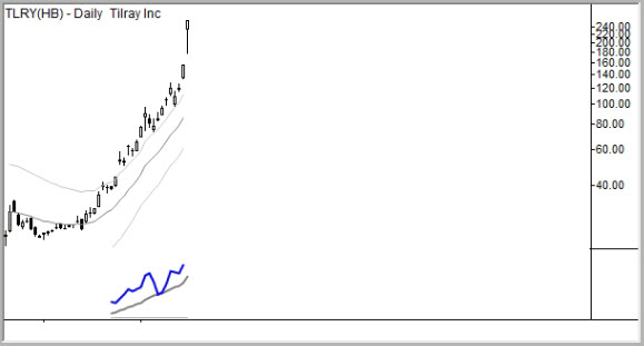 Pot stocks are the new cryptocurrencies, at least in terms of volatility and bubble potential. Take a look at the chart of TLRY below.
