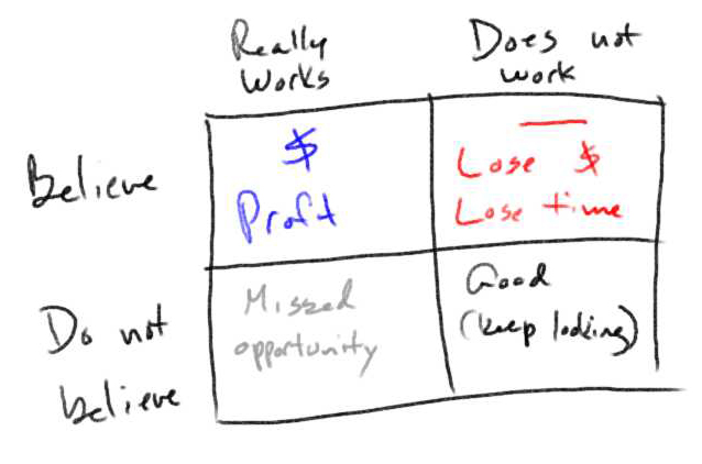 - If the idea Really Works and I Believe it works, I make money. Cha-ching. Profit. This is where we want to be. In fact, this is the only place on that box we want to be.